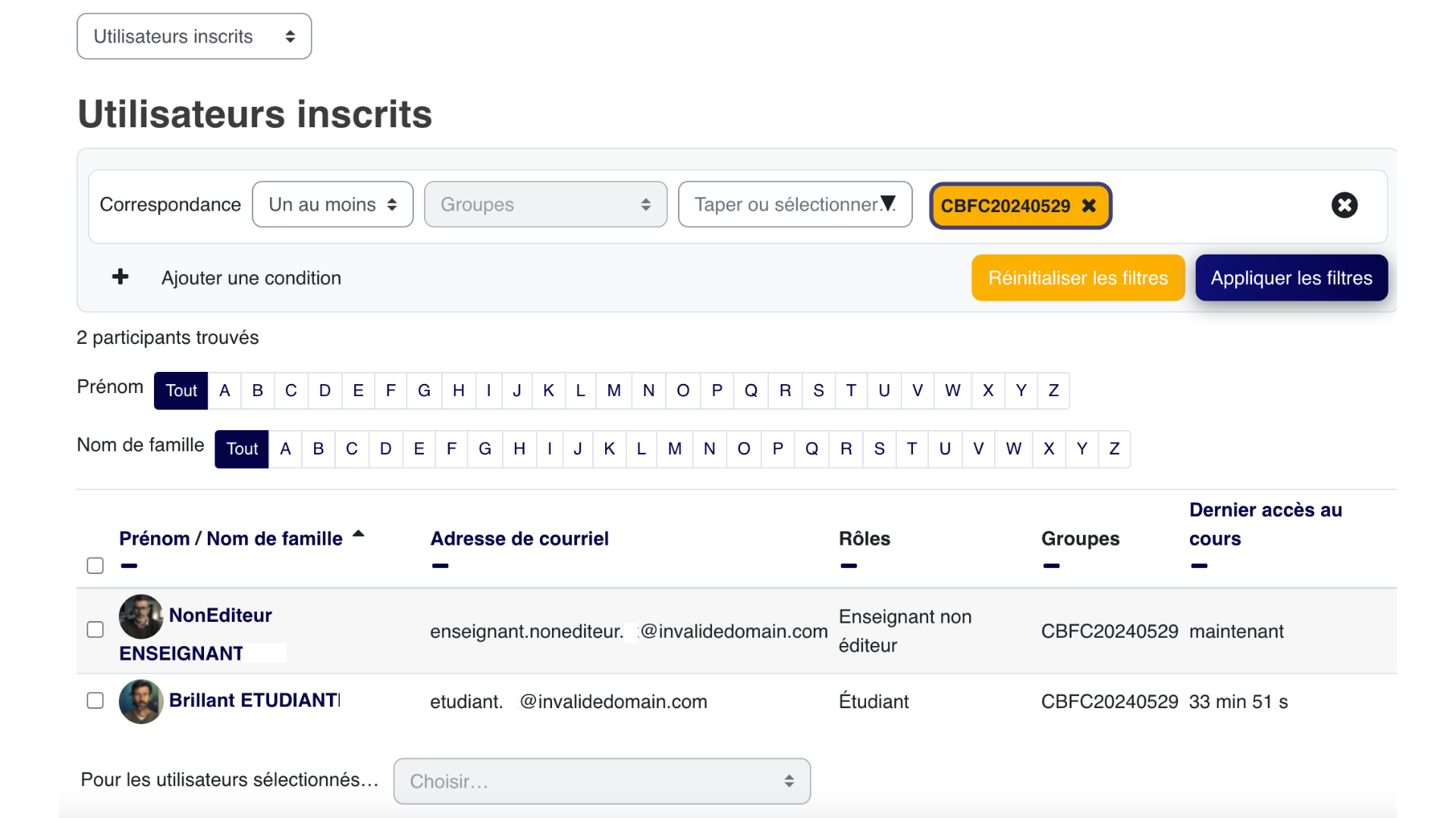 - Vérifier que vos stagiaires soient bien inscrits à ce cours et dans le même groupe que vous: Accès aux participants