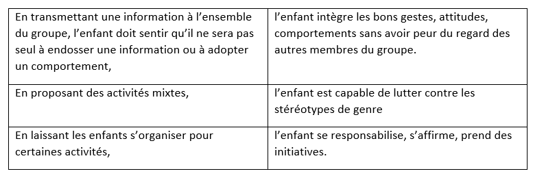 L’enfant doit être considéré dans sa globalité. L’objectif est de lui permettre de grandir à son rythme et de construire son identité propre, tout en vivant des temps collectifs.