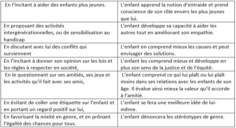 | En apportant des réponses à ses questions et en créant les conditions favorisant le questionnement. | L'enfant est curieux, il s'intéresse à tout il faut donc préserver cette curiosité et la stimuler. |