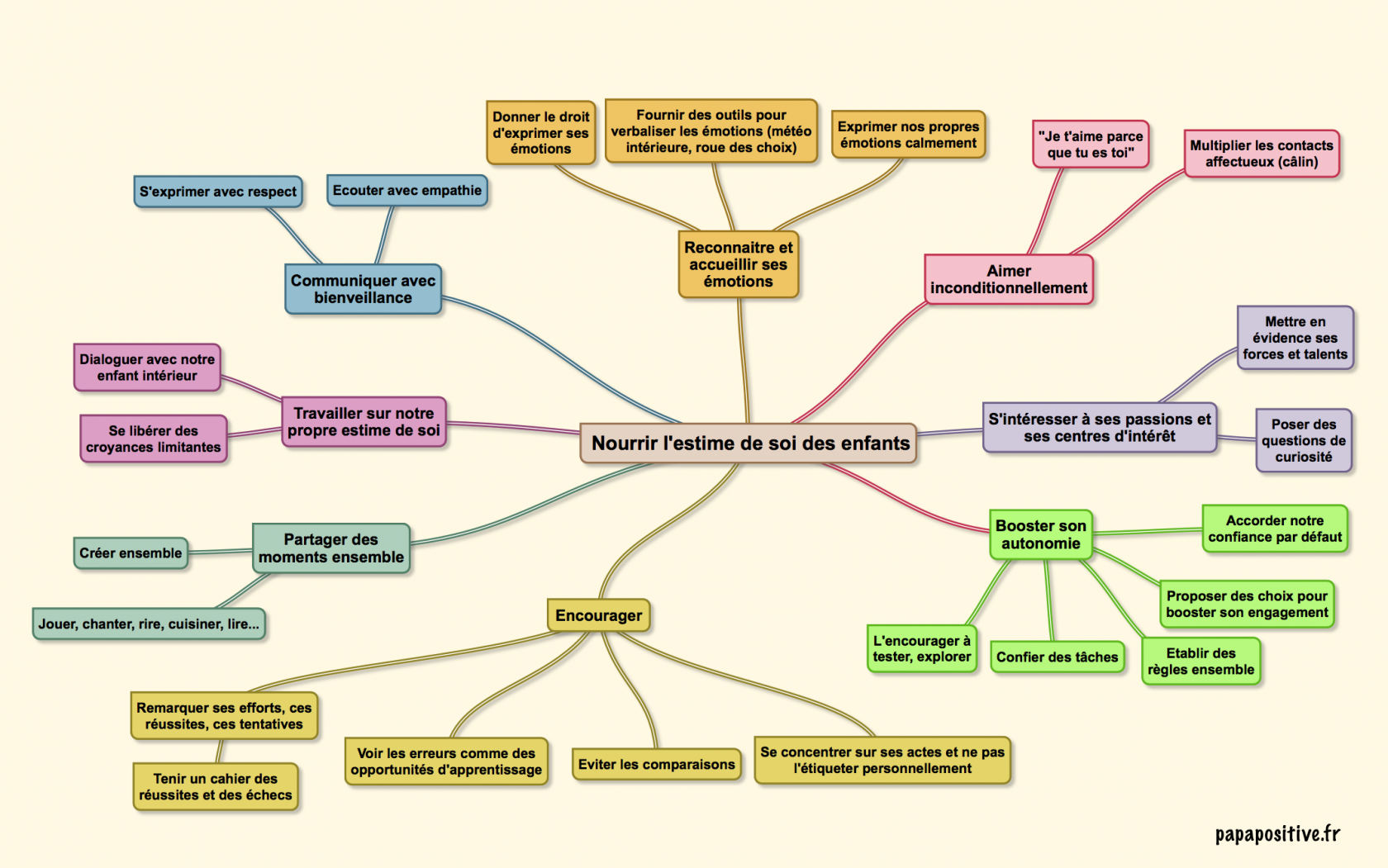 En tant qu’éducateur, vous avez une grande influence sur les enfants. Cliquez sur la carte mentale ci-dessous. Initialement destinée aux parents, elle vous donnera des clés pour aider l’enfant à construire son estime de soi.